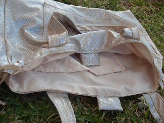 samba handbag:beautiful snakekin inspired material makes this bag one of a kind, super soft delicately cut, oversize front pocket, tassles on each side of the bag. Available in blue and beige.size: 39cm x 45 cm