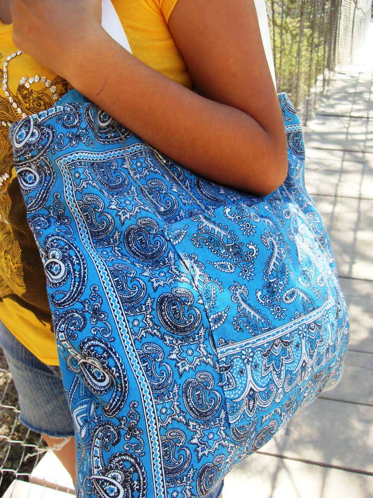 paisley toteSpacious paisley print handbag, comes with exterior pocket and decorated with beads from each handle, available in pink, blue, green, yellow, red, orange.